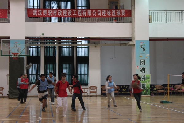 此次趣味籃球賽活動(dòng)是博宏公司工會(huì)、團(tuán)支部聯(lián)合組織的,有四個(gè)項(xiàng)目部、鄂州油廠和行政組成6支球隊(duì)參賽。每支球隊(duì)推選3男2女參賽,比賽有意識(shí)地將規(guī)則設(shè)計(jì)向女生傾斜,要求男生不能防守女生,女生必須參與進(jìn)攻持球但不必遵守籃球規(guī)則。男女生“混搭”共同參與的形式增強(qiáng)了比賽的趣味性。