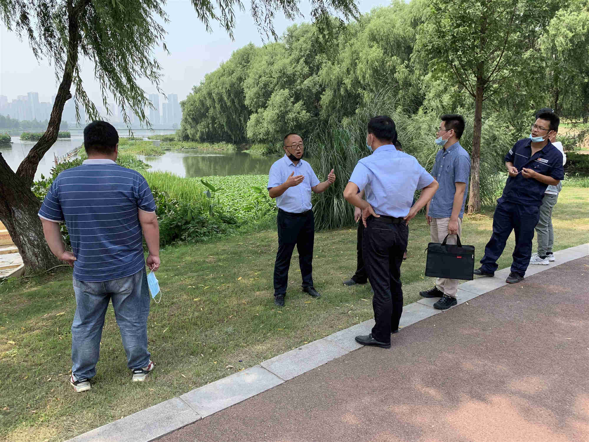 會后,水治理專班成員與國禎環保技術人員前往墨水湖進行考察,國禎環保對我司提出的技術問題進行解答,并給出了治理建議。此次技術交流,我司水治理專班成員對水治理方面的先進技術知識有了更深了解,為公司在水治技術方面提供了良好的借鑒。