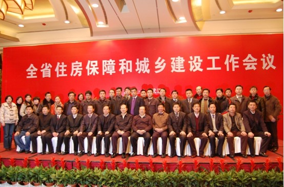 2月16日,在武漢光明萬麗酒店召開全省住房保障和城鄉建設工作會議,漢陽市政再度躋身2010年度湖北省建筑企業綜合實力20強。圖為胡紅勝總經理頒獎后與20強企業合影留念。