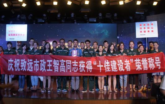 2016年7月31日下午,武漢建筑及勘察設計行業“雙十佳”評選活動,在楚天傳媒大廈隆重舉行頒獎典禮。此次頒獎中,我公司王智高同志獲得“十佳建設者”榮譽稱號。