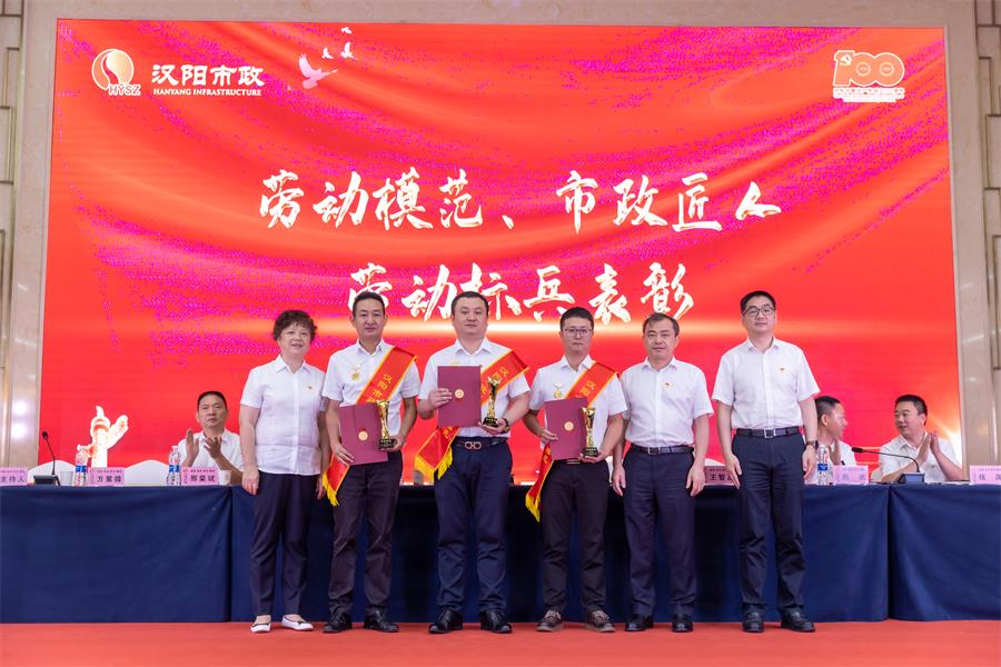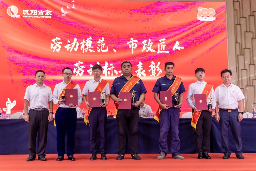 黃桂華宣讀《武漢市漢陽(yáng)市政建設(shè)集團(tuán)有限公司關(guān)于2021年勞動(dòng)模范、市政匠人、勞動(dòng)標(biāo)兵的表彰決定》,授予李磊、盧偉、曹元鑫等3名同志“勞動(dòng)模范”榮譽(yù)稱(chēng)號(hào);授予章聰、林志剛、姜昊、顏春生、吳鈺梁等5名同志“市政匠人”榮譽(yù)稱(chēng)號(hào);授予龍繼光、張青、劉海軍、徐軍濤、李海華等5名同志“勞動(dòng)標(biāo)兵”榮譽(yù)稱(chēng)號(hào)。